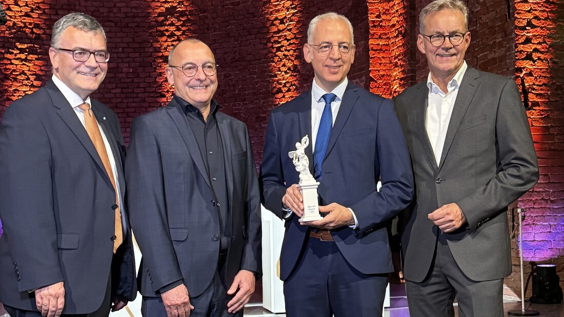 • V.l.n.r.: Staatsminister Dr. Florian Herrmann mit VDMB-Ehrenvorsitzenden Christoph Schleunung, Preisträger Roland Schreiner und Holger Busch.