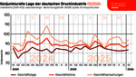 Im Januar 2026 bewerteten die vom ifo Institut befragten Entscheider der Druck- und Medienunternehmen ihre aktuelle Geschäftslage etwas besser als im Vormonat. Auch die Einschätzungen im Hinblick auf die nächsten sechs Monate fallen optimistischer aus. Die Ausprägungen der aktuellen und erwarteten Geschäftslage bestimmen die Entwicklung des Geschäftsklimas, das einen guten Vorlaufindikator für die Produktionsentwicklung der Druck- und Medienindustrie darstellt.
